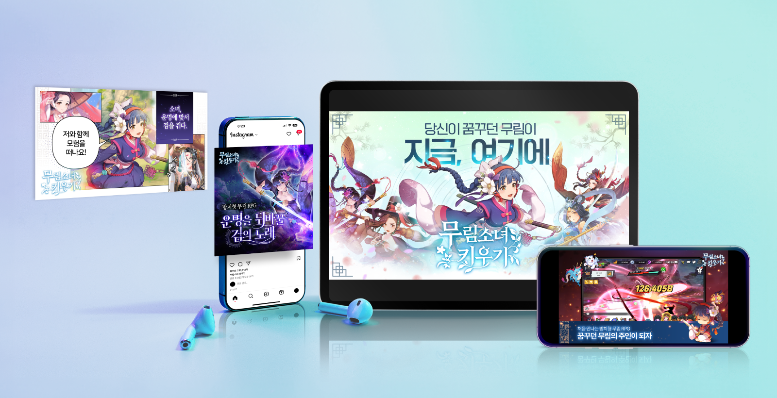 무림이라는 배경, 다양한 미소녀 에셋에 맞춰 게임의 컨셉을 강화할 수 있는 다양한 소재를 제작했습니다. 그중에서도 웹툰 컷형 소재와 웹소설 표지형으로 제작된 소재가 가장 큰 효율을 기록하며, 타겟으로 한 게이머들의 높은 반응을 이끌었습니다.